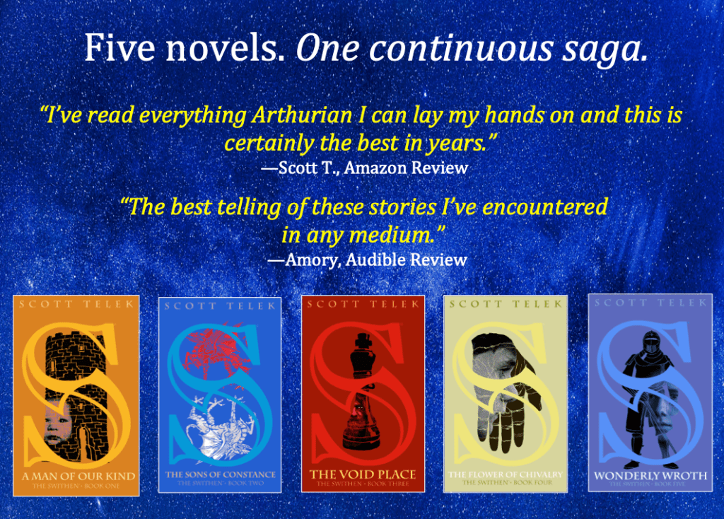 Greetings all fine peoples, I hope you are well. I am coming up on finishing the first draft of Book 6 of The Swithen series, which as I must remind you is the only book series that remains completely faithful to the 1136-1485 Arthurian legend (I have to put that in there for any newbies who happen to come in here). I plan 25 novels to tell the full Arthurian legend in all the scope and majesty it deserves and 5 are out now and here’s a progress report on Book 6!