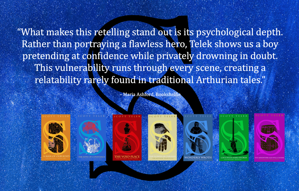 Now there’s that last bit where it says that Arthur is sent to live with Sir Ulfius and Sir Brastias, and this paragraph became the basis for the fifth book in my series, because think of it: Ulfius was the main knight of his father, Uther Pendragon, and Brastias, known as Bretel in other versions (and my novel), was the main knight of Arthur’s mother, Igraine. And the thought of Arthur hanging out and being trained by these two big knights of old was too much to resist. So this book became about Arthur being trained as he waits between having to pull the sword, and also in this book, as I alluded to, Brastias finds out that Ulfius looked like him when he came in to deceive Igraine—throwing Brastias’ whole life into turmoil—and he isn’t real thrilled about that when he finds out.