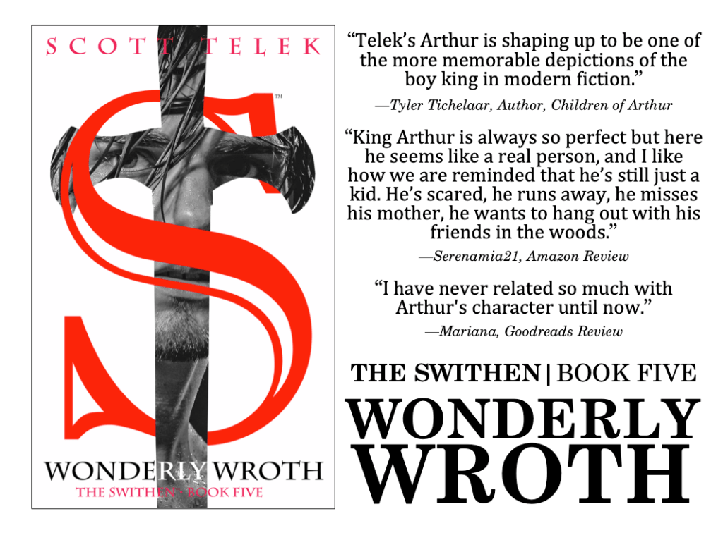 Wonderly Wroth, the fifth book of Scott Telek’s acclaimed The Swithen series, has just been released. While The Swithen series is committed to remaining faithful to the Arthurian legend as laid down between 1136-1485 (and plans to take twenty-five novels to tell the full legend), this is the second novel in the series to be almost all new, since it covers a period not covered by the Medieval sources. The book picks up just after Arthur has first pulled the sword from the stone and takes us through Arthur’s training to the moment when he is coronated king.