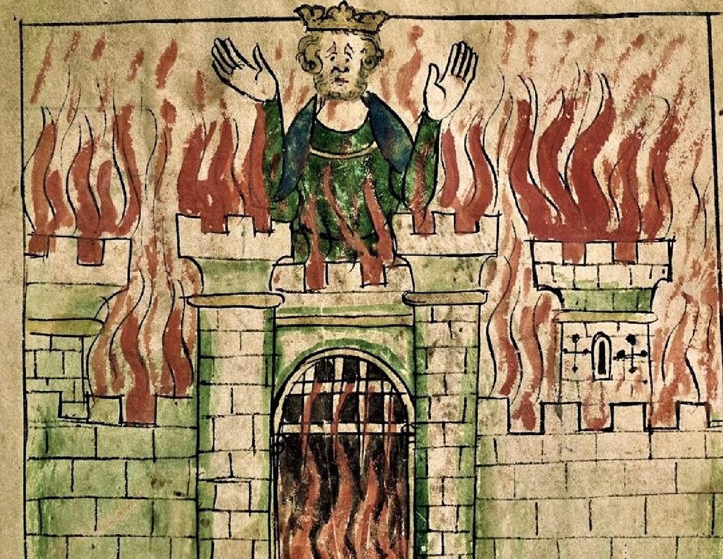 Eventually Hengist throws Vortigern in prison and attempts to get as much territory as possible out of him, and once Vortigern finally refuses, Hengist releases him. This leads in to the most well-known part of the story, in which Vortigern attempts to build a tower, leading to his meeting Merlin and the fight between the red and white dragons. The legend contains no end to Vortigern and Rowena’s marriage, so we are left to assume it ended around the time Vortigern was imprisoned.